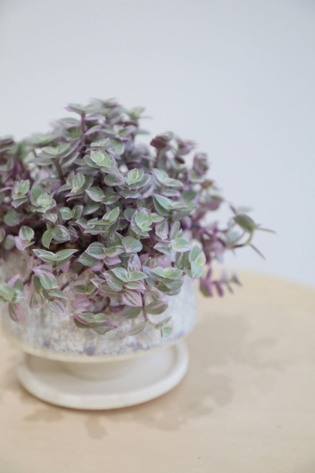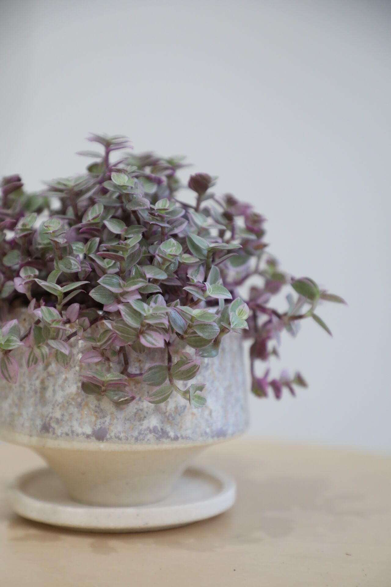 光を受けると葉裏の紫がふわりと透け