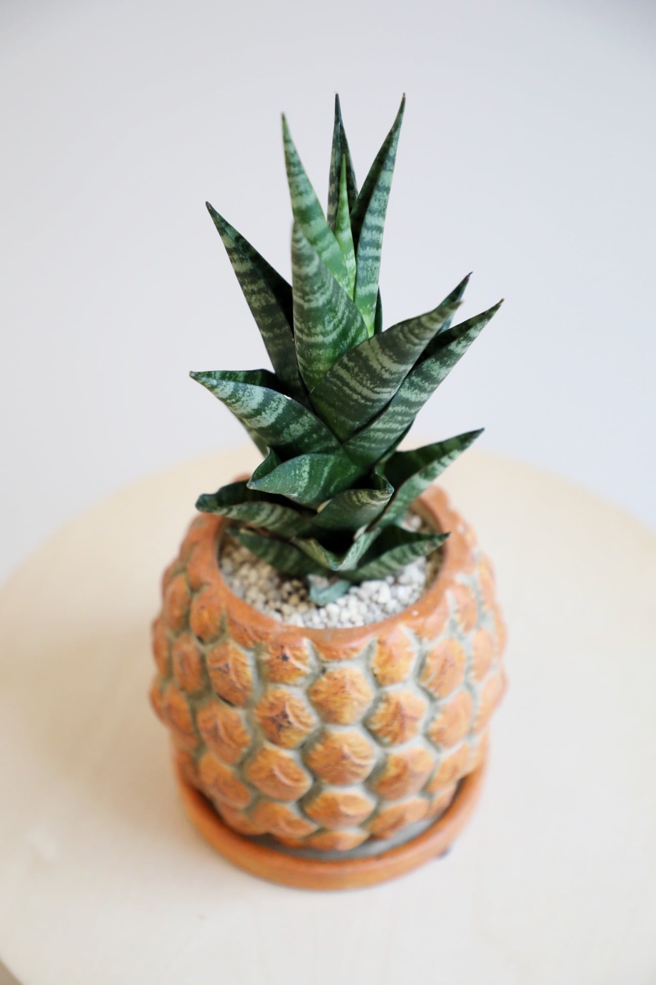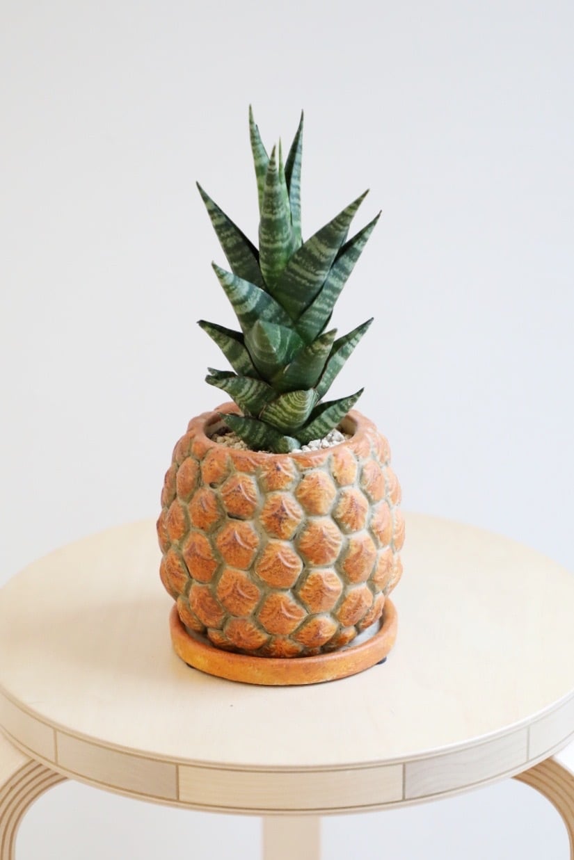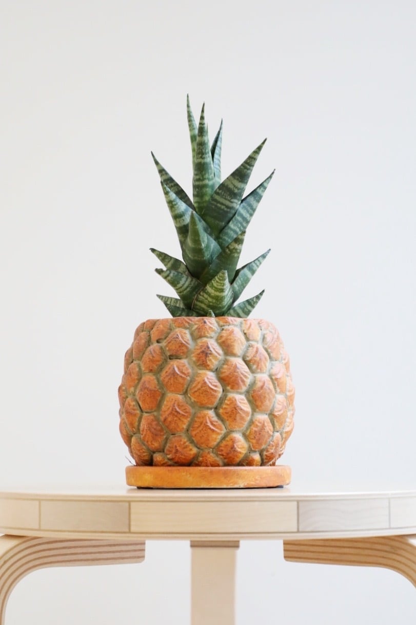 太陽と実りを象徴するパイナップルの鉢。