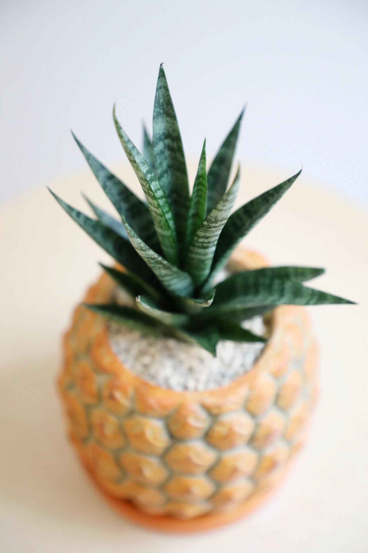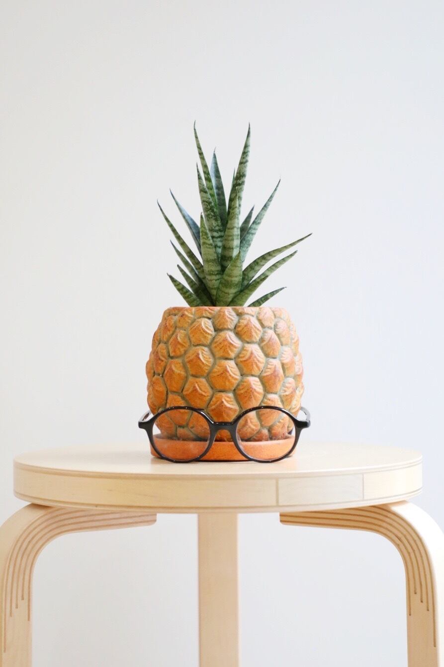 太陽と実りを象徴するパイナップルの鉢。