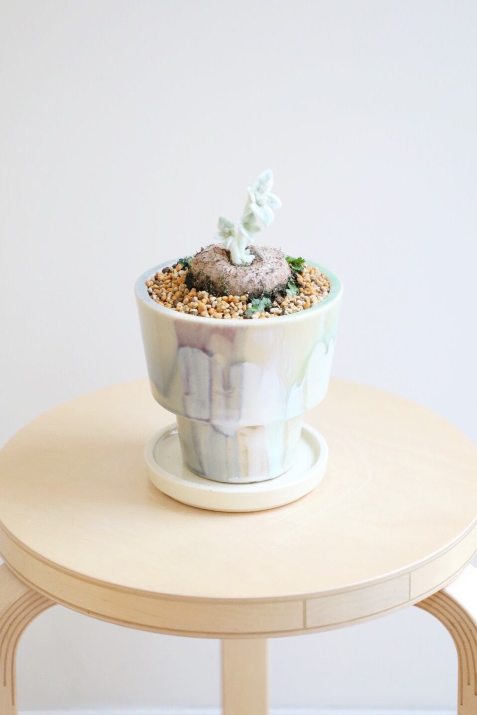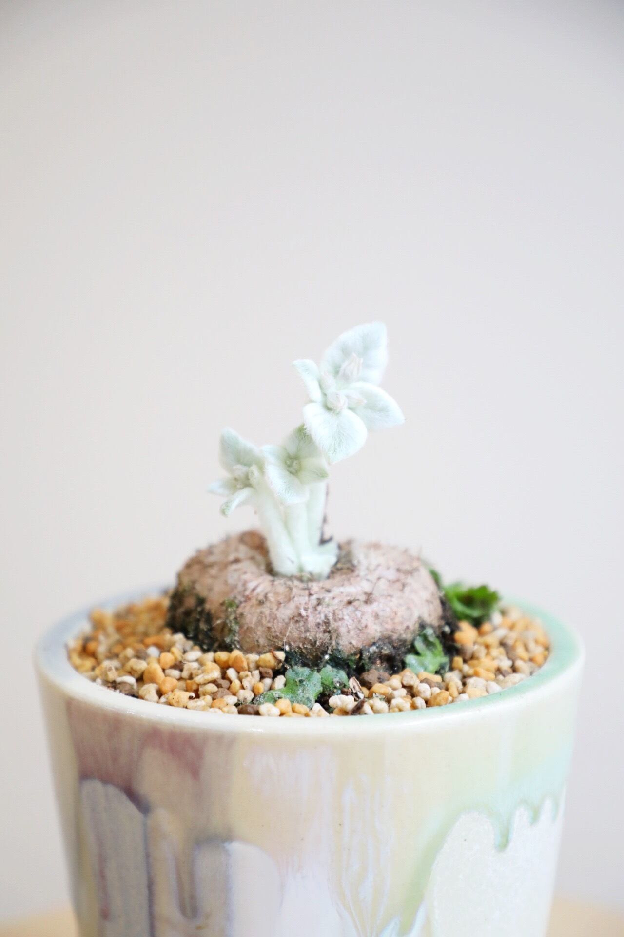 核となる塊根部分から生える可愛いシルバーの葉