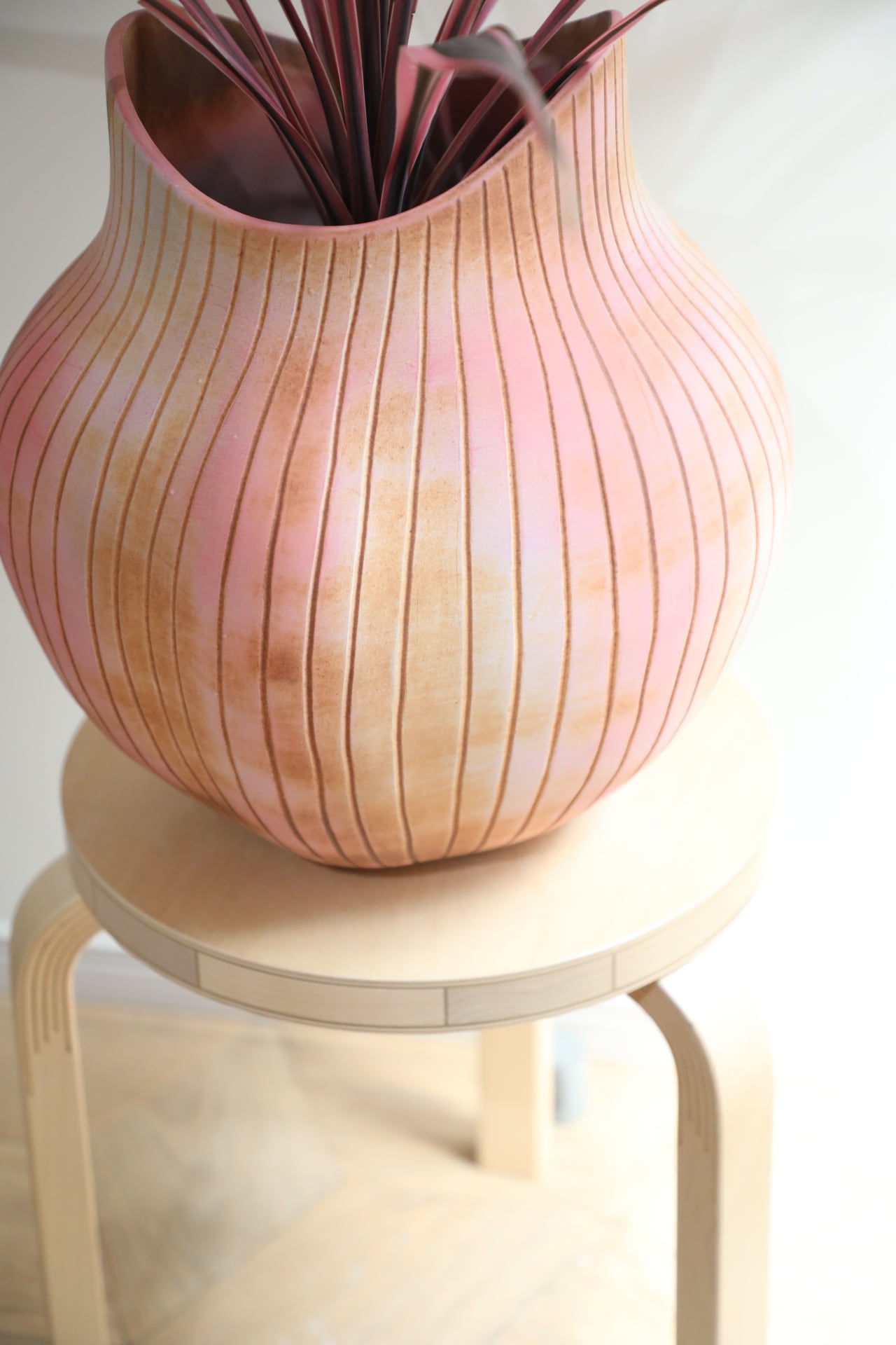 カラーリング、質感が光るアートポットの組み合わせ。